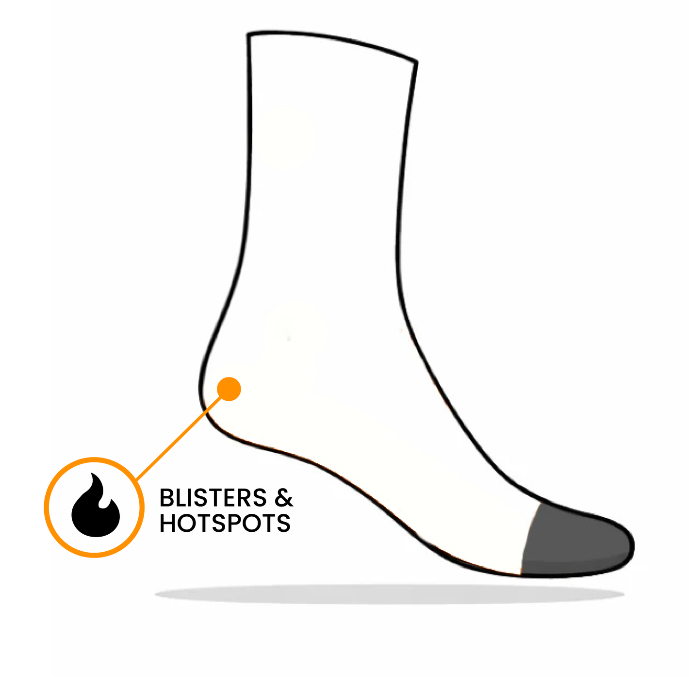 Überhitzung ist ein häufiges Problem für aktive Füße —Stoffwechselaktivität und Reibung beim Sport erhöhen die Temperatur in deinen Schuhen. Diese überschüssige Wärme kann zu Unbehagen und Schwellungen führen. Der Mesh in unseren Socken helfen, Wärme abzuleiten und deine Füße kühler zu halten.