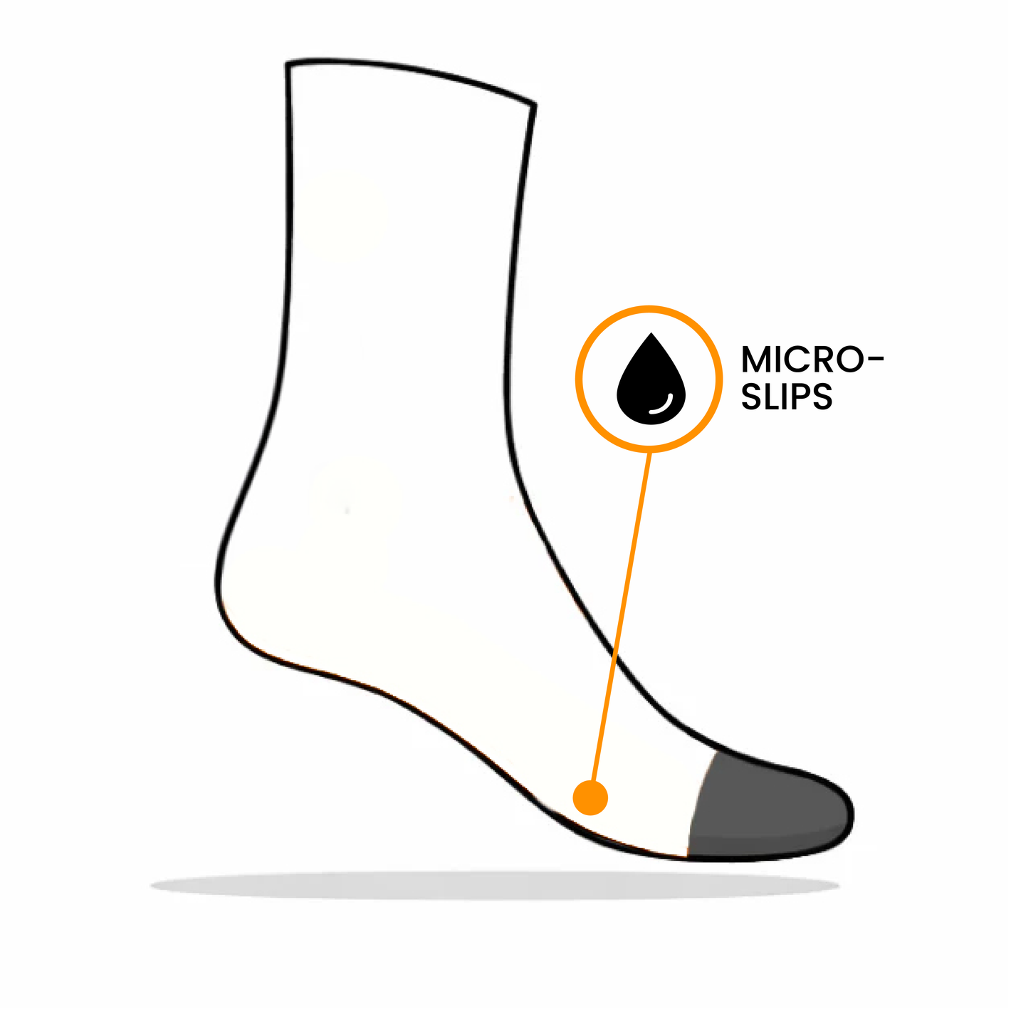 Gezielte Kompression bedeutet, dass wir unterstützenden Druck genau dort platzieren, wo deine Füße ihn am meisten brauchen – rund um das Fußgewölbe und den Mittelfuß. Durch die Fokussierung der Kompression auf diese Schlüsselzonen helfen unsere Socken, deine Stabilität zu erhöhen, die Durchblutung zu fördern und Ermüdung zu reduzieren – selbst während der intensivsten Tennis-Rallyes.